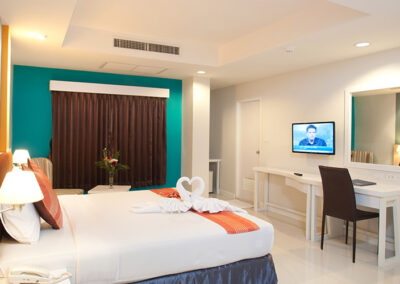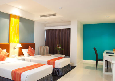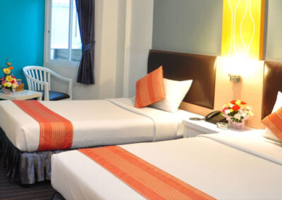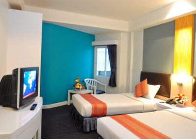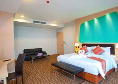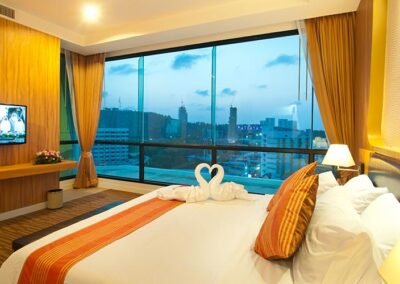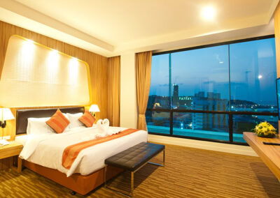VC Hotel Pattaya has 257 guest rooms excelling in spaciousness and modern amenities. All guest rooms are elegantly appointed with king or twin beds. They include individual air conditioning, colour television with satellite channels, refrigerator, telephone, mini bar and Wi-Fi Internet. Bathroom with bathtub or shower ready with hot and cold water, and hairdryer.